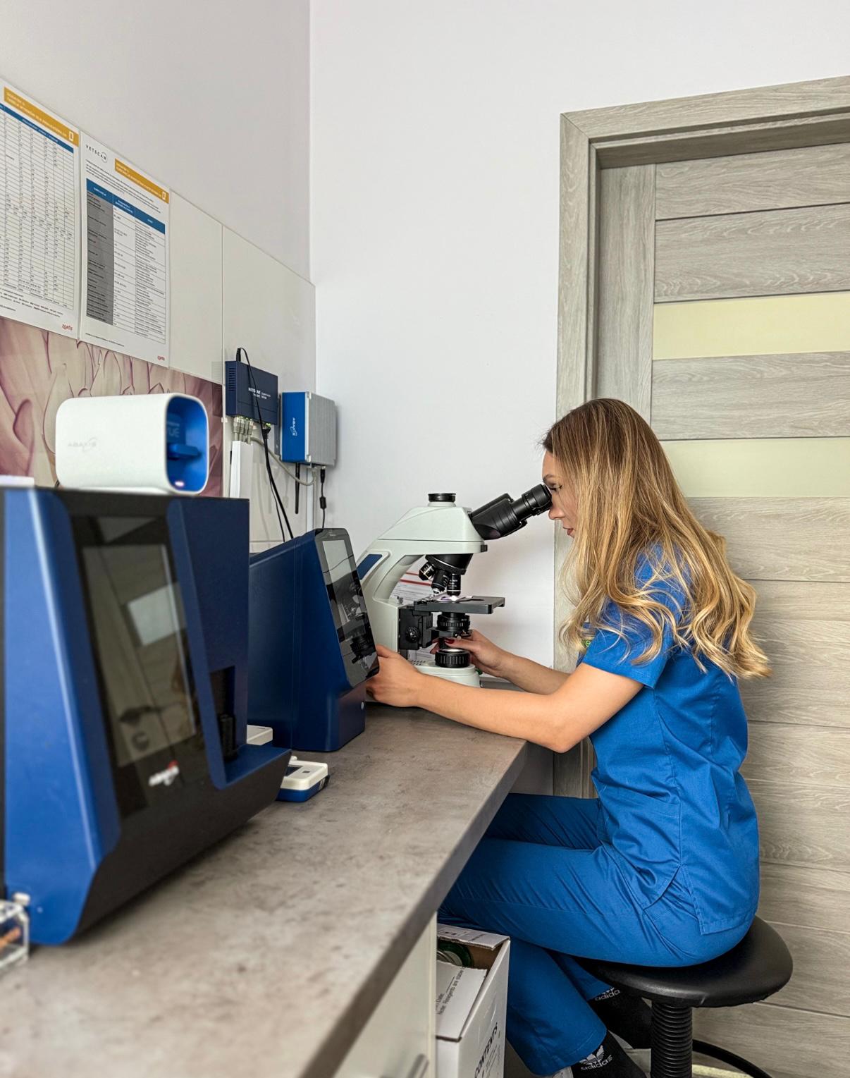 Dzięki własnemu laboratorium wykonujemy większość badań na miejscu, co przyspiesza diagnozę i rozpoczęcie leczenia. Współpracujemy również z największymi laboratoriami w Polsce i za granicą (Vetlab, Laboklin, Idexx, Animalab).